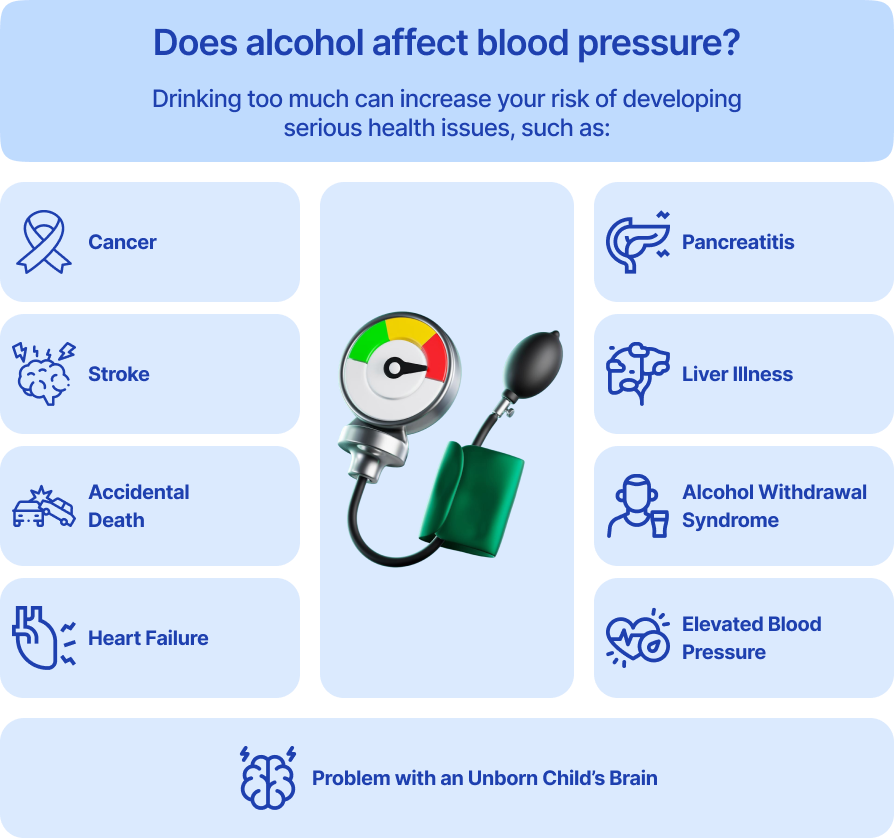 Alcohol is a known contributor to long-term high blood pressure. It acts on multiple systems in the body: