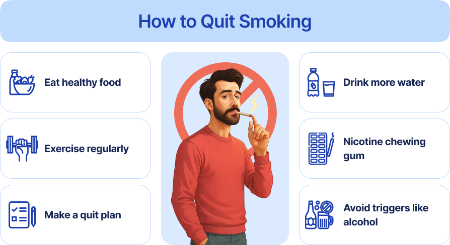 A diet full of fruits, vegetables, nuts, and whole grains provides antioxidants that fight damage caused by smoking. Vitamins like C and E help reduce inflammation. Avoid too much caffeine and alcohol, as they can trigger cravings or weaken your willpower.
