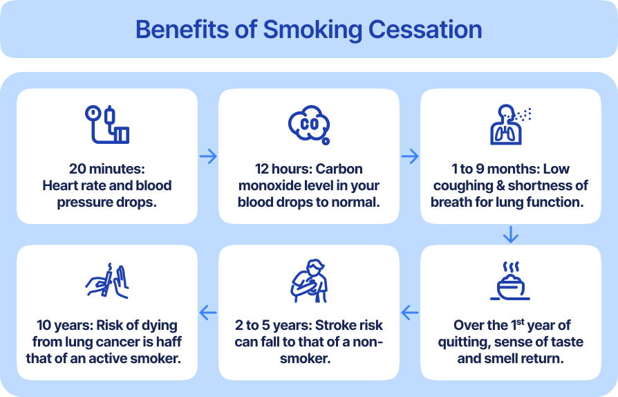 The moment you stop smoking, your body starts to repair itself. The changes happen quickly and keep improving with time: